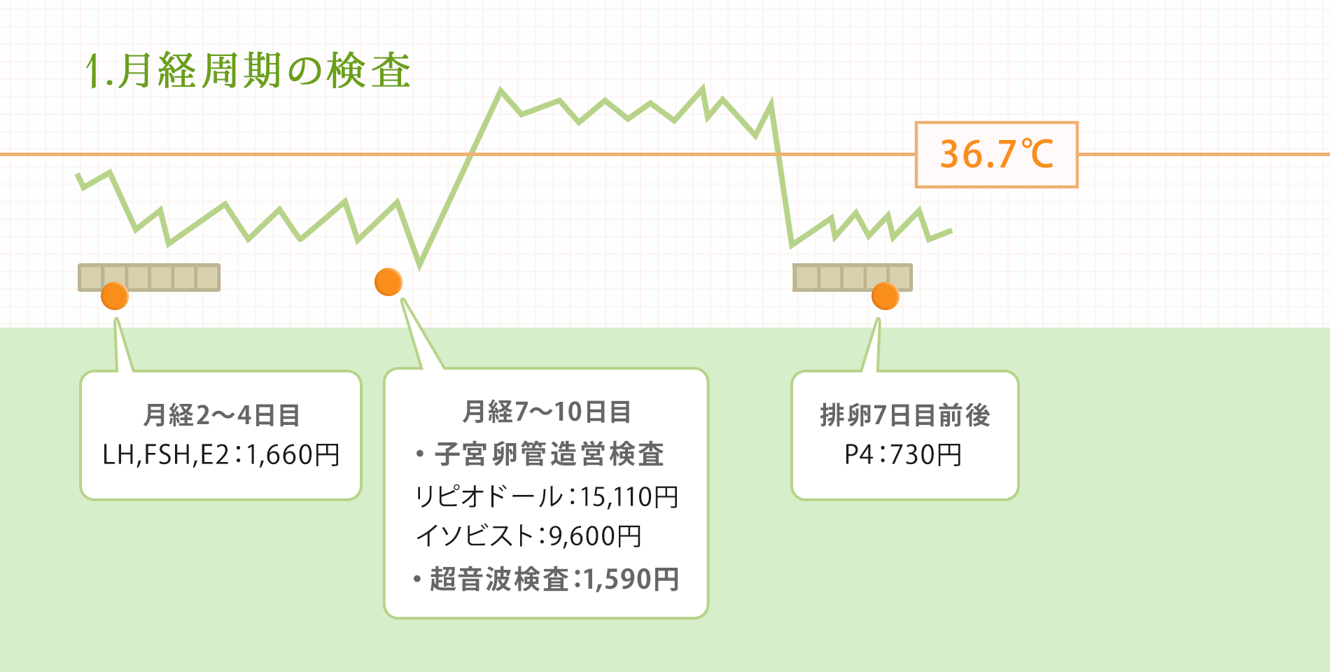 排卵後5~8日目 1,460円(保険適用 / 黄体ホルモン・プロラクチン) 黄体ホルモン、プロラクチンを採血して着床機能を調べます。 |